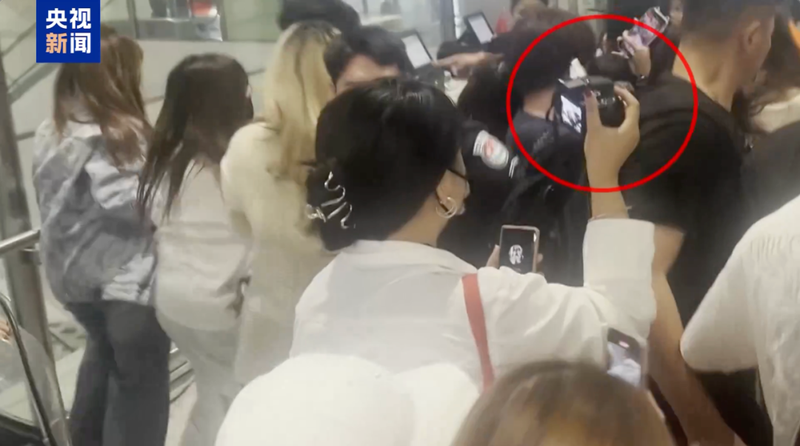 当艺人进入到VIP安检区之后,大量粉丝冲向普通旅客安检区进行安检,之后立刻涌向VIP安检通道,将隔离带围得严严实实开始拍照。此时仍有大量粉丝陆续从普通安检通道方向跑来,待艺人完成安检,人群瞬间围拢上去,粉丝不断地推搡向前贴脸拍摄。